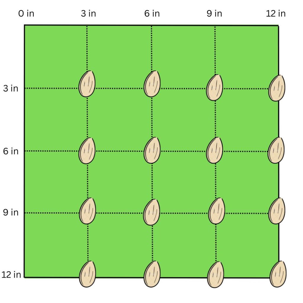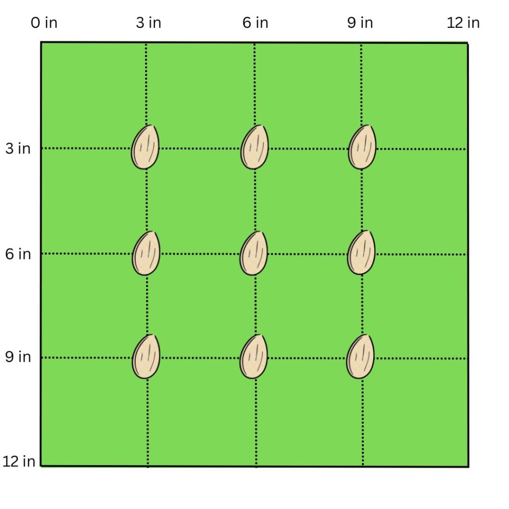 For a packet with seed spacing of three inches, and a square foot section of your garden, the calculation would look something like this:
